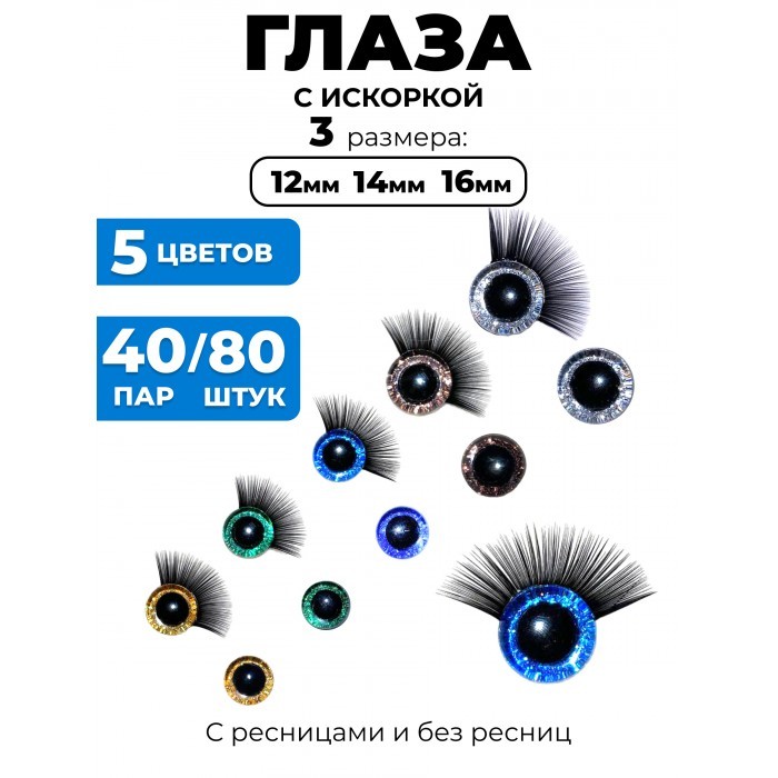 Глазки искорки+Глазки искорки с ресничками (40 штук глаза/40 штук глаз.ресн) 262657