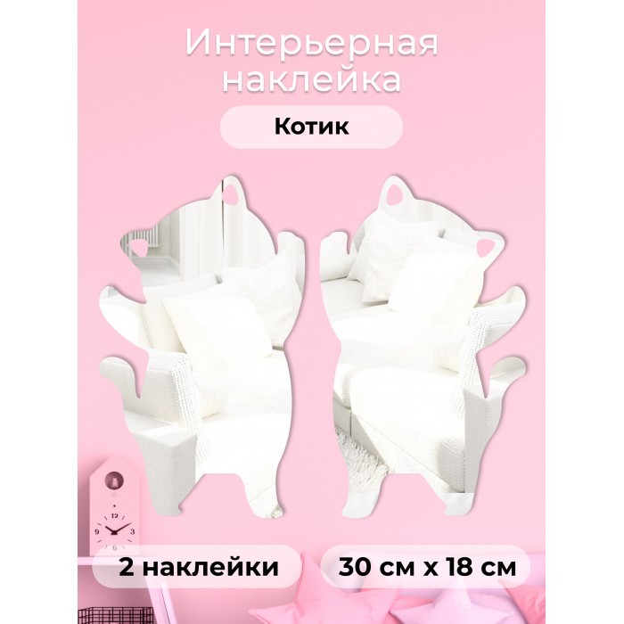 Интерьерные зеркальные наклейки Котик 2шт (30*18см-2шт) серебро 265535