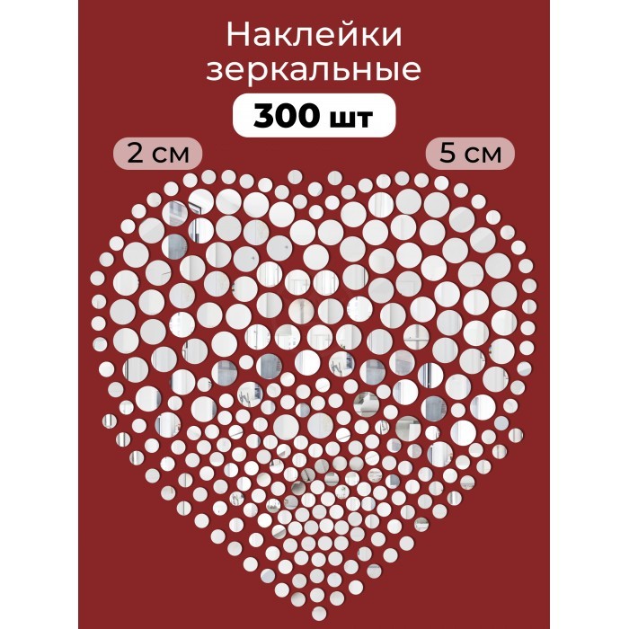 Интерьерные зеркальные наклейки Круги ( 300штук, 5см-100шт, 2см-200шт ) серебро 265537