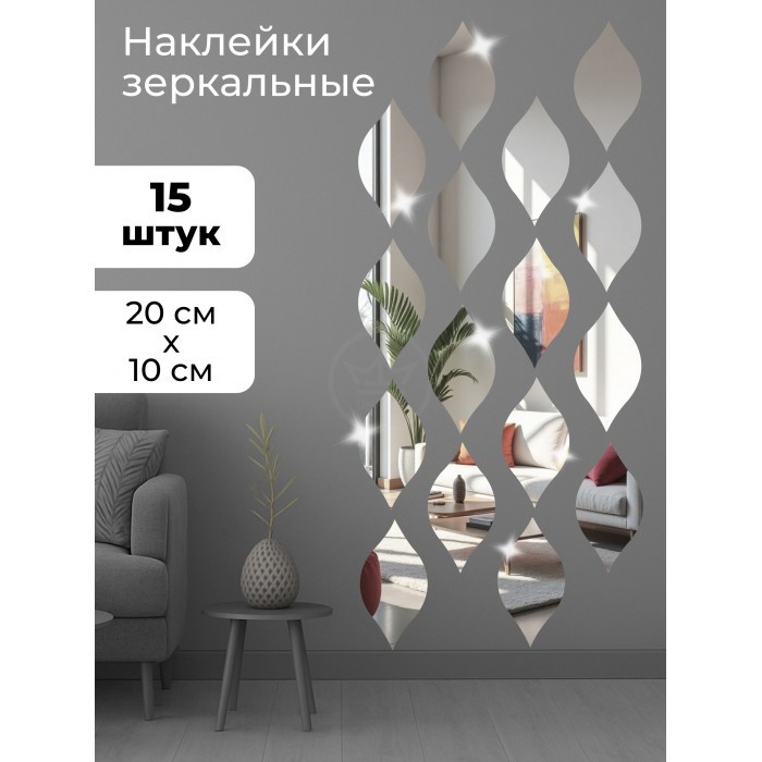 Интерьерные зеркальные наклейки Капля 15 шт ( 20*10см) 264245