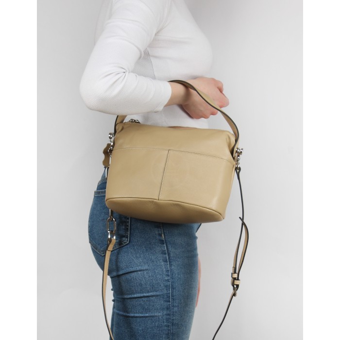 Сумка женская натуральная кожа GU 163-2015 1отд+карм/пер, плечевой ремень, бежевый SALE 264272