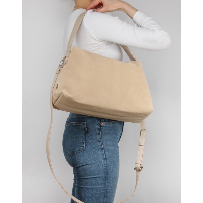Сумка женская натуральная замша ADEL-324/2в (отделка ИСК/КОЖА), 1 отд, плечевой ремень, (УЦЕНКА/ДЕФЕКТ: черные разводы) бежевый SALE 263734